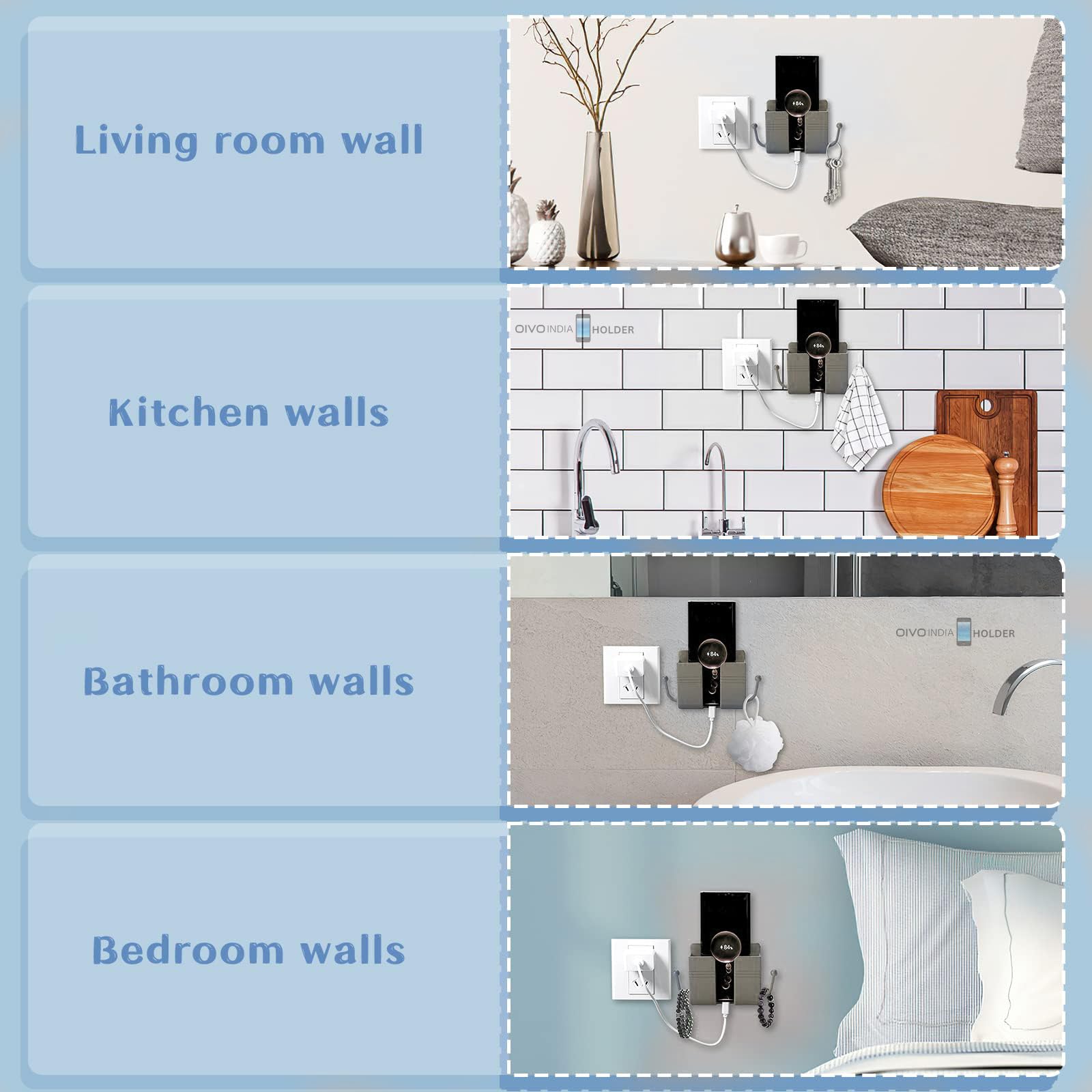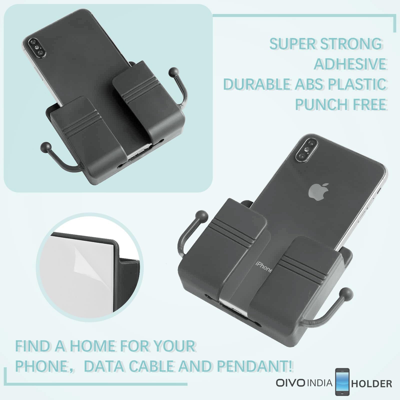 OIVO INDIA Wall Charger Hook Mobile Phone Holder Universal Cellphone Hanging Bracket Hooks Charging Dock Stand (Grey, Pack of 1)